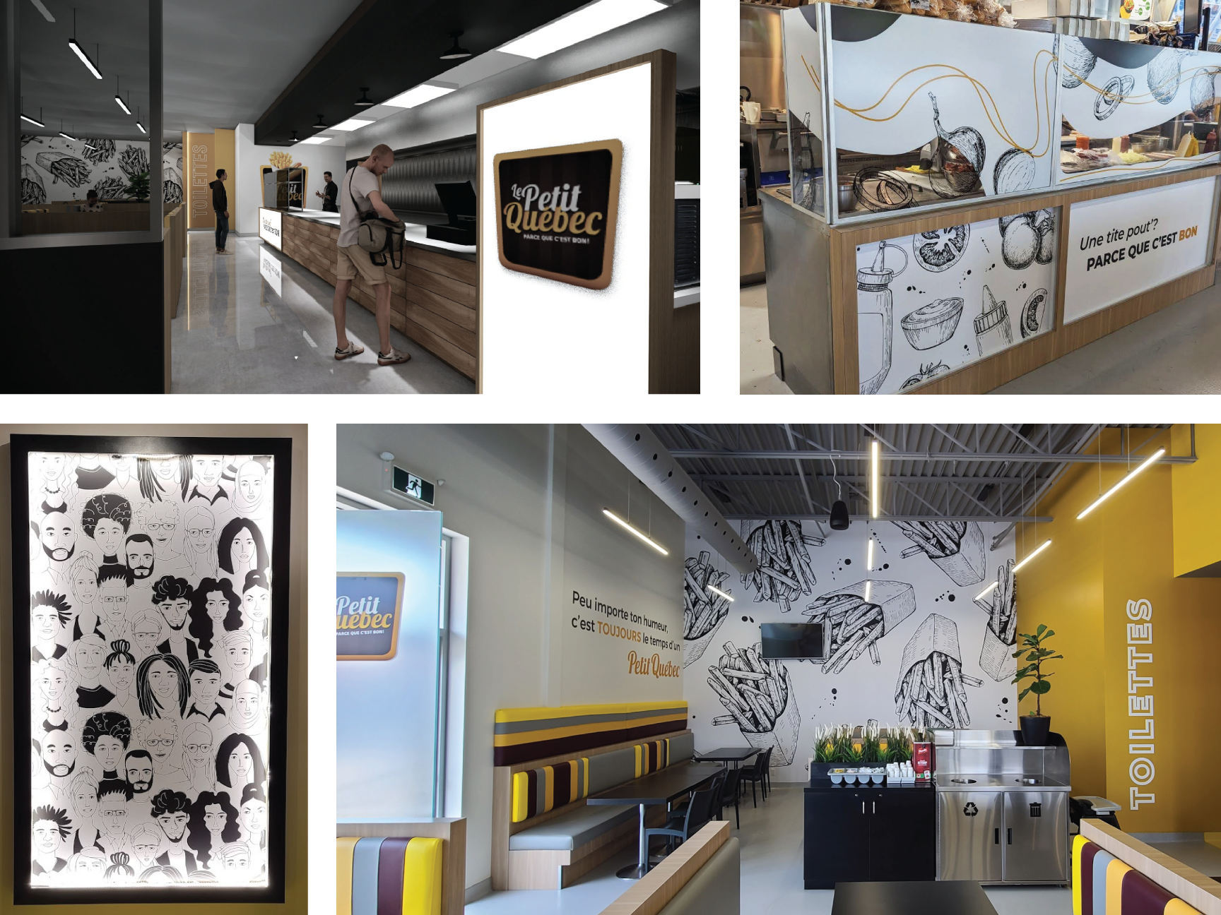 Conception de visuels de signalisation conformes au branding corporatif et aux directives architecturales. Une approche standardisée permettant un déploiement uniforme et reproductible à travers l’ensemble des établissements de la chaîne.
